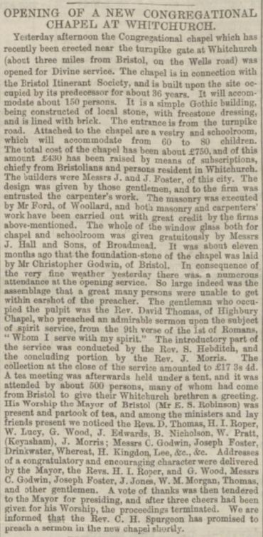 This occasion was documented in an article from the Western Daily Press dated 21st June 1866.